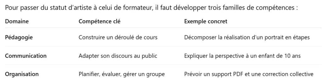 👉 être un bon artiste ne fait pas automatiquement de soi un bon formateur.